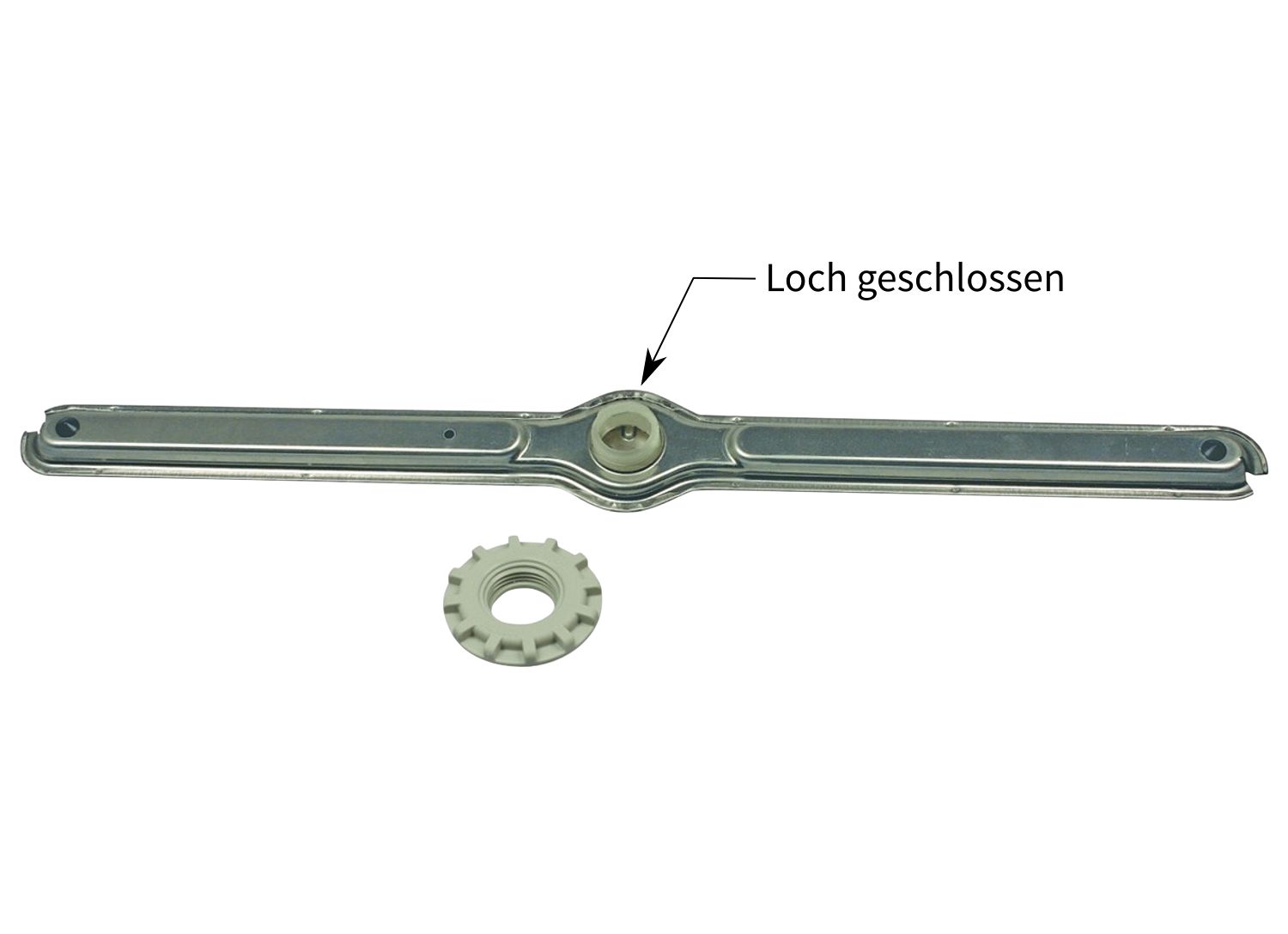 ACHTUNG: Dieser Sprüharm wurde von Miele in zwei Varianten hergestellt. Diese Variante hat das Loch in der Mitte geschlossen. Für ältere Modelle muss das Loch offen sein.